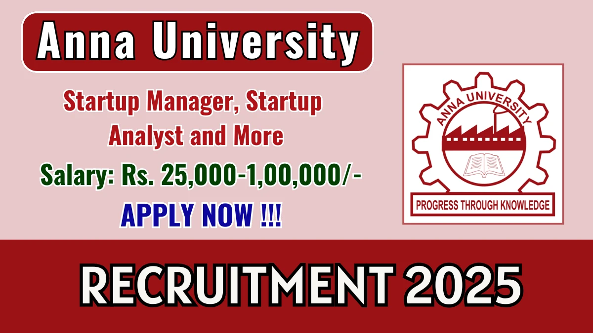 Anna University Recruitment 2025 – Apply Online for 03 Startup Manager, Startup Analyst and More Posts