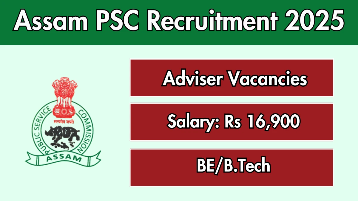 Assam Public Service Commission (Assam PSC) has announced recruitment for the post of Adviser. There is a total of 1 post available. The online application process starts on 29-05-2025 and ends on 28-06-2025. Interested and eligible candidates can apply through the Assam PSC website, apsc.nic.in.