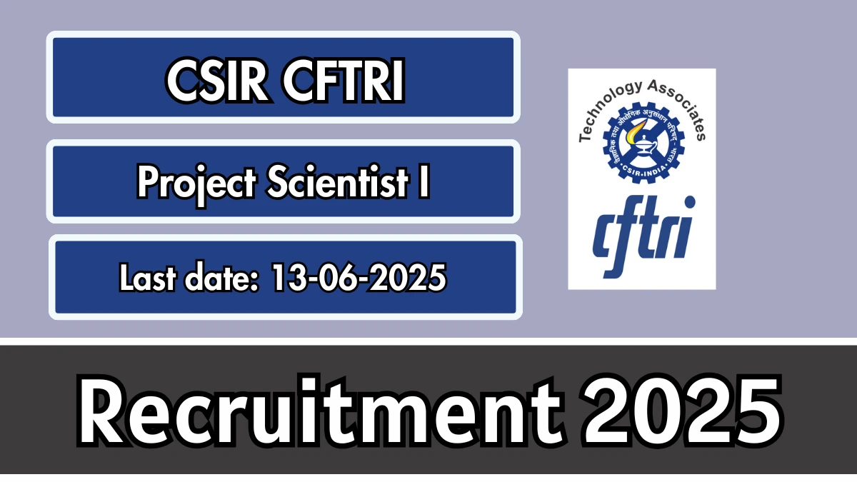 CSIR-Central Food Technological Research Institute (CFTRI) has announced recruitment for the post of Project Scientist I. A total of 01 post is available. The online application process starts on 10-06-2025 and closes on 13-06-2025. Interested and eligible candidates can apply through the official website.