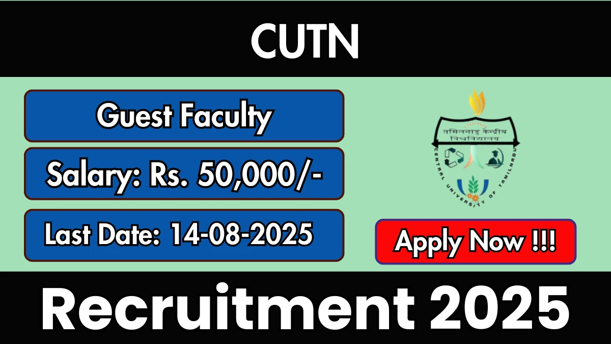 📋 Summary: CUTN Guest Faculty Recruitment 2025 (Central University of Tamil Nadu, Active, N/A, cutn.ac.in)