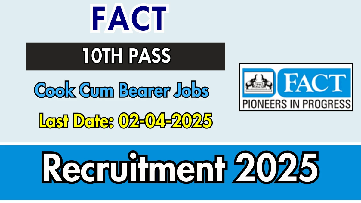 The Fertilisers and Chemicals Travancore (FACT) is recruiting for the post of Cook Cum Bearer. A great opportunity for candidates with 10th qualification! Apply online from 07-06-2025 to 16-06-2025. Don’t miss this chance to join FACT.