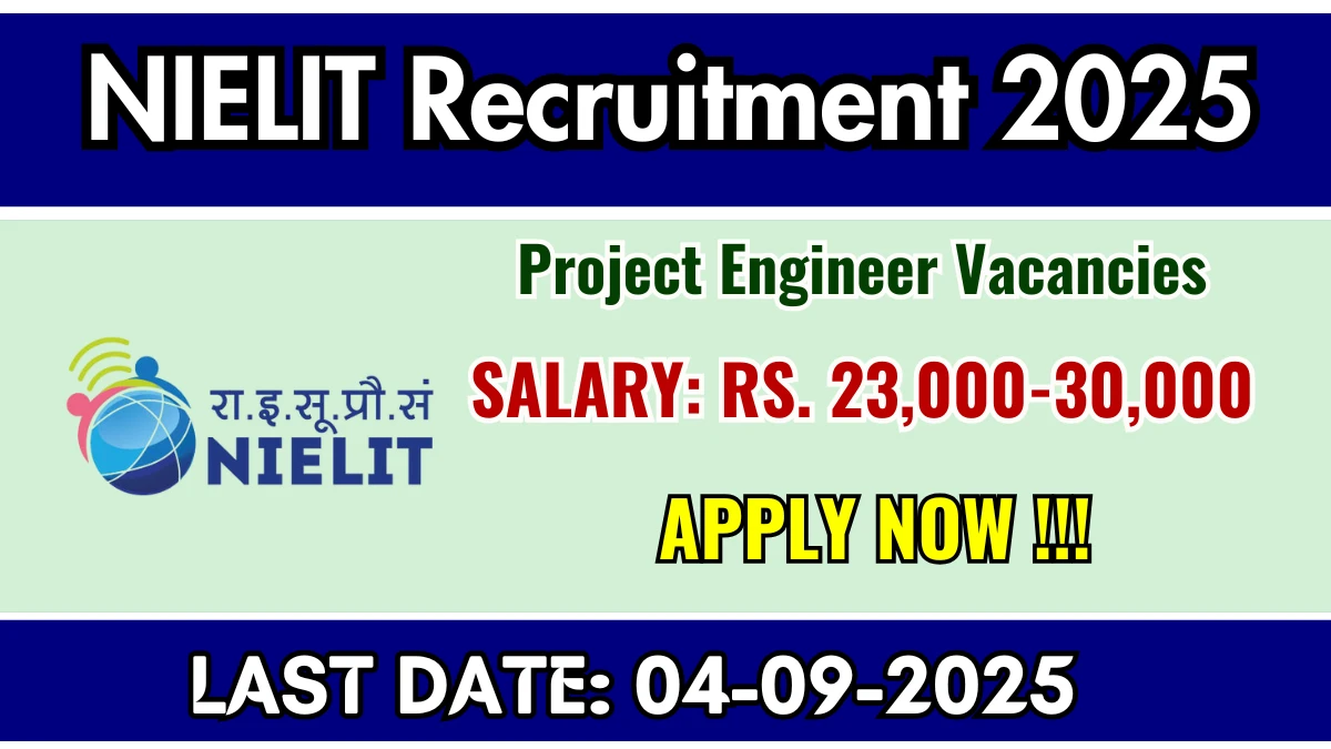 NIELIT (National Institute of Electronics and Information Technology) has announced recruitment for Project Engineer positions. Total Posts: 4. Apply Online from: 22-08-2025 to 04-09-2025.