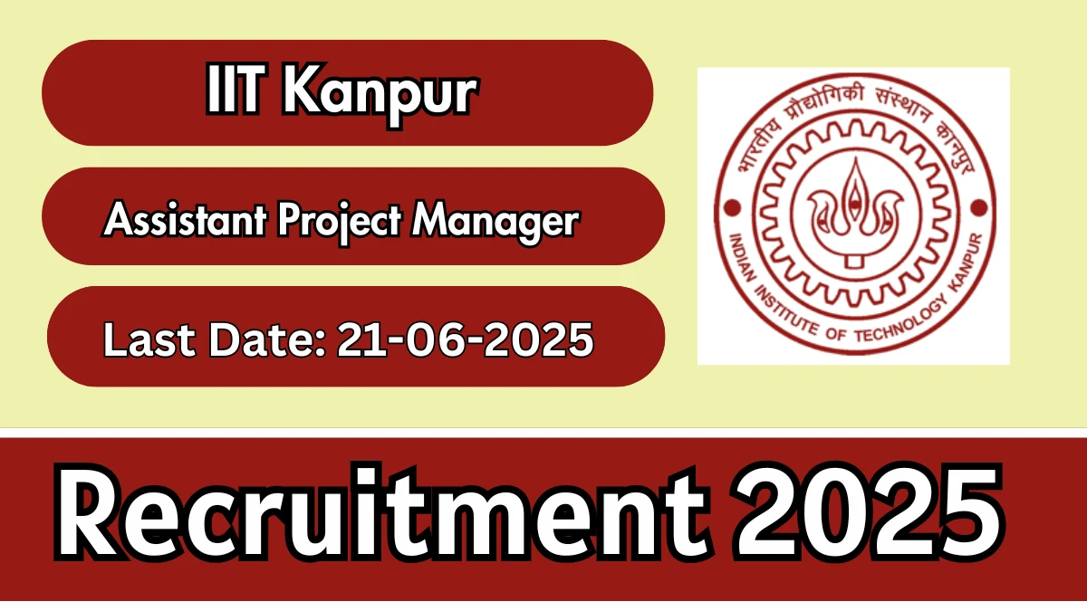 IIT Kanpur is inviting online applications for the post of Assistant Project Manager. A total of 02 vacancies are available. The application process starts on 12-06-2025 and ends on 21-06-2025. Interested and eligible candidates can apply through the official IIT Kanpur website.