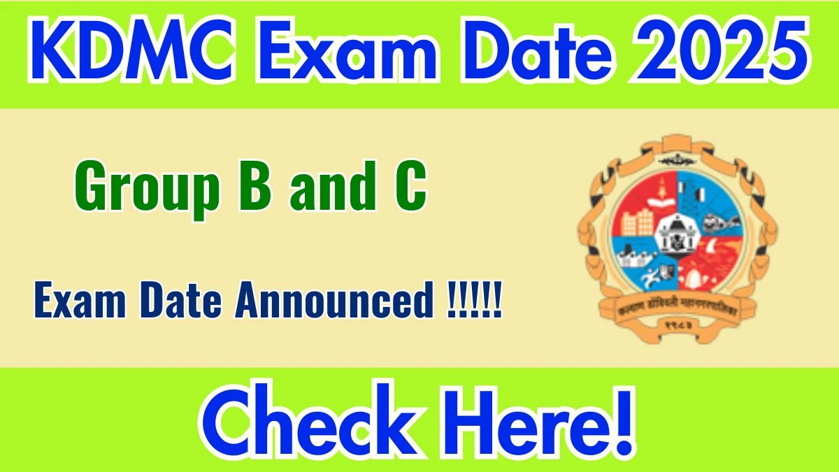 📋 Summary: KDMC Group B and C Exam 2025, Kalyan Dombivli Municipal Corporation, Exam Date Released, September 9-12, 2025, kdmc.gov.in
