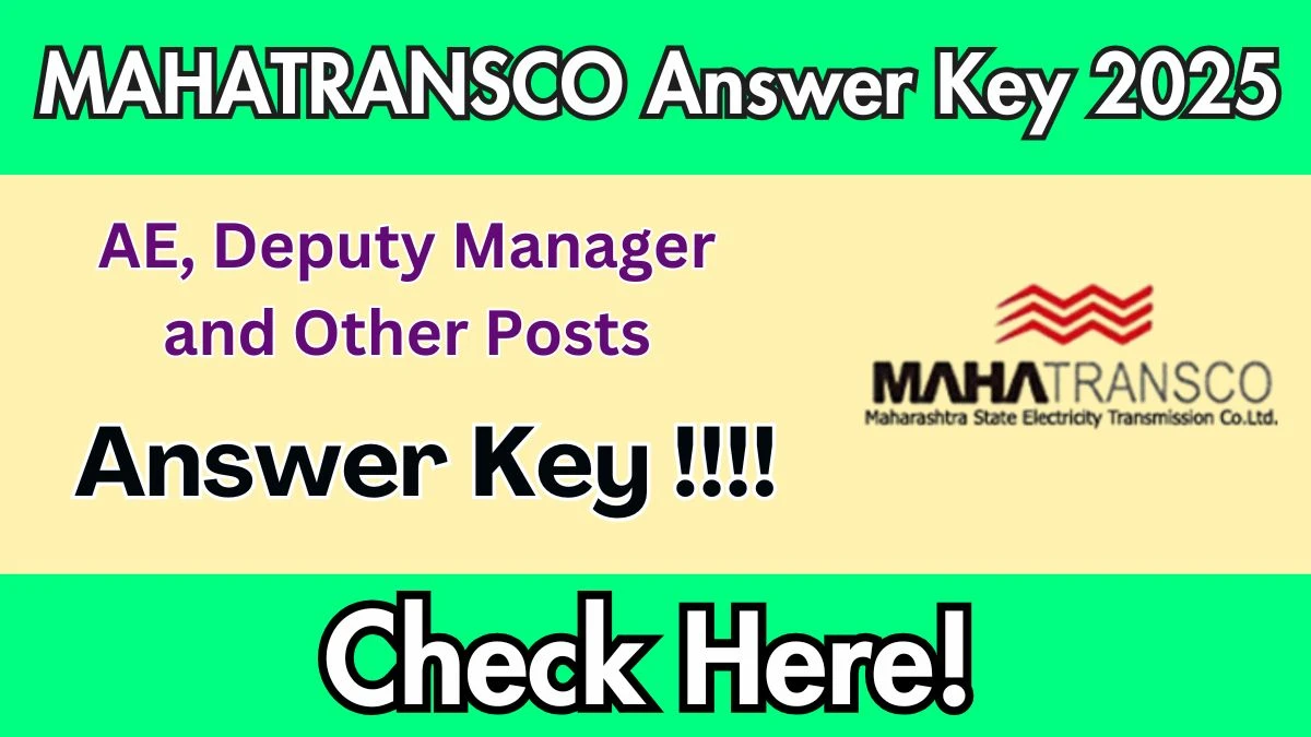 MAHATRANSCO is recruiting for the posts of Assistant Engineer (AE), Deputy Manager, and other positions. A total of 504 vacancies are available. The recruitment exam was conducted from July 22, 2025, to August 1, 2025. Answer Key is expected to be released soon.