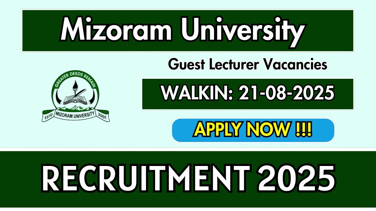 Mizoram University is inviting eligible candidates for the post of Guest Lecturer. A walk-in interview will be conducted. Check details below.