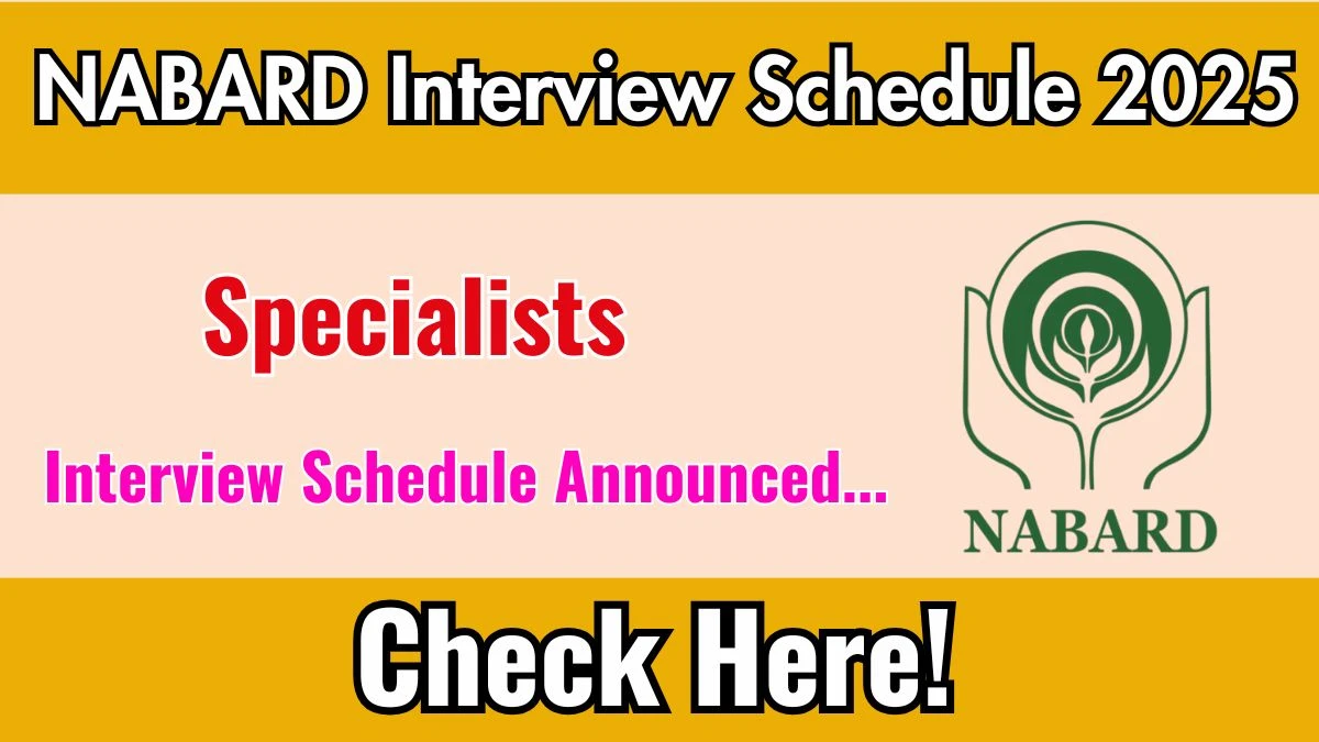 NABARD (National Bank for Agriculture and Rural Development) has announced the Interview Schedule for Specialists. Check details below.