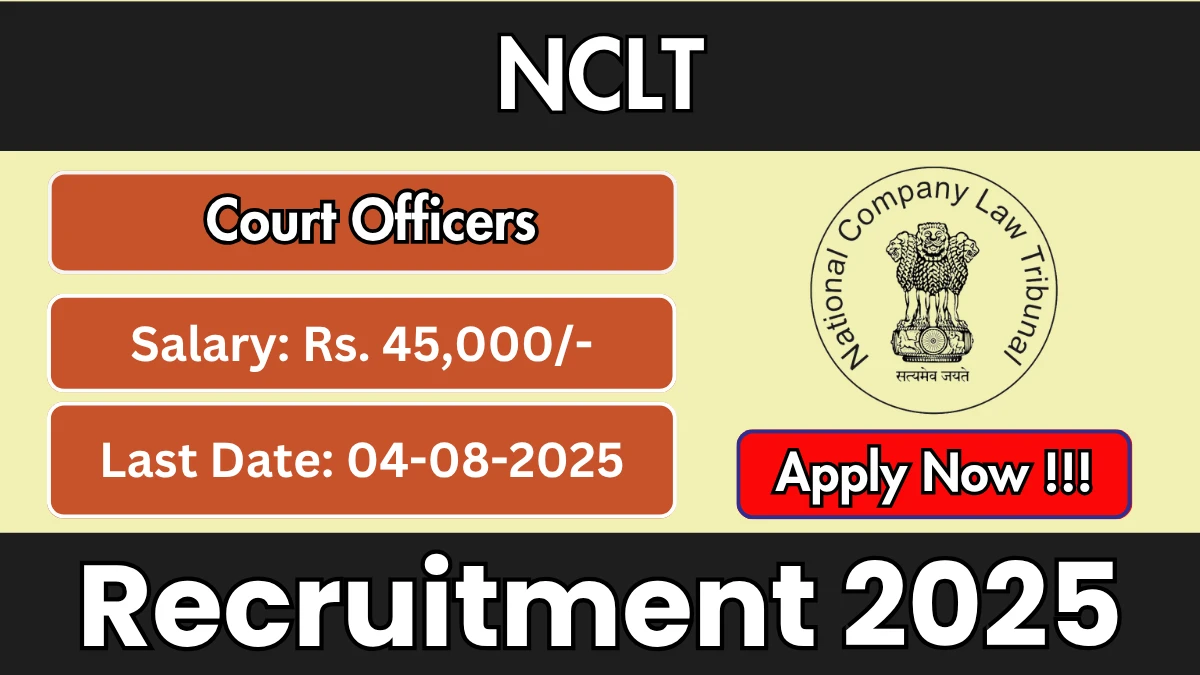 The National Company Law Tribunal (NCLT) is inviting online applications for the post of Court Officer. A total of 01 vacancy is available. The online application process starts on July 3, 2025, and concludes on August 4, 2025. Interested and eligible candidates are encouraged to apply through the official NCLT website. 📋
