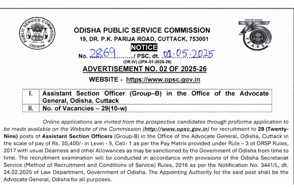 OPSC Assistant Section Officer Exam Date 2025 Announced at opsc.gov.in Verify the schedule for the examination date and details here