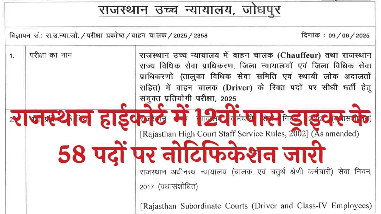 Rajasthan High Court is inviting online applications for the post of Driver. A total of 58 vacancies are available. The online application process starts on 18-06-2025 and concludes on 07-07-2025. Interested and eligible candidates can apply through the official website.