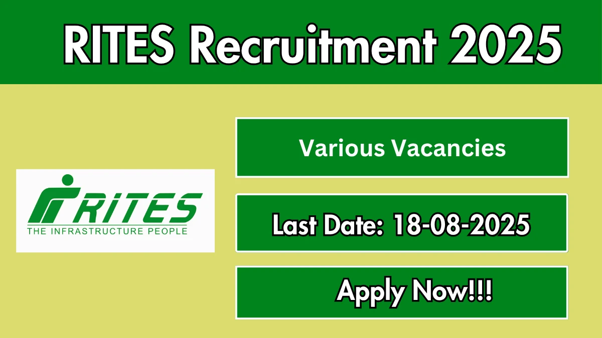 RITES (Rail India Technical and Economic Service) is inviting online applications for the recruitment of Manager, Engineer, and More. A total of 14 posts are available. The online application process commences on 18-07-2025 and concludes on 18-08-2025. Interested and eligible candidates can apply through the RITES official website.