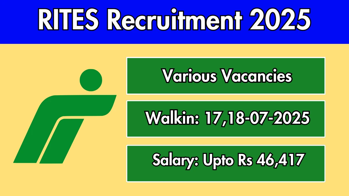 RITES (Rail India Technical and Economic Service) is conducting walk-in interviews for Site Surveyor and Quality Control Expert positions. Total posts: 2. Walk-in dates: July 17, 2025, and July 18, 2025. 📋