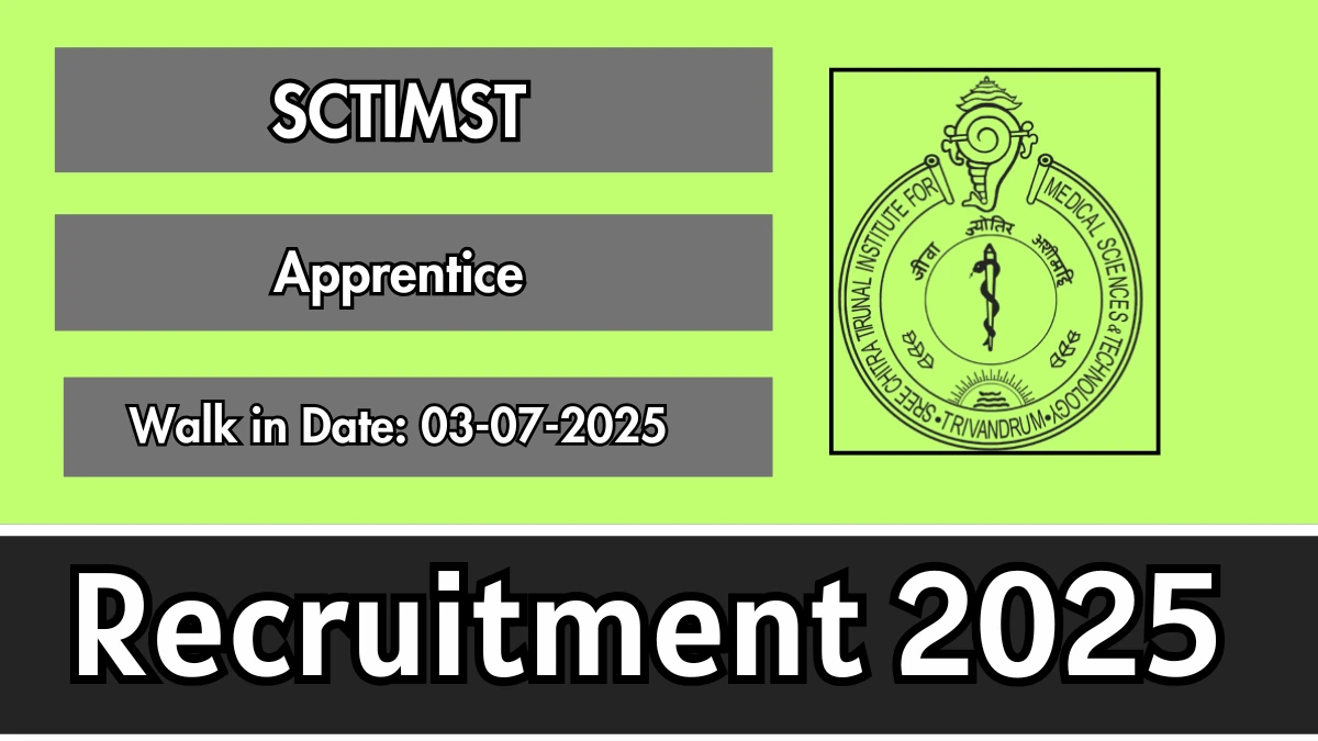Sree Chitra Tirunal Institute for Medical Sciences and Technology (SCTIMST) is conducting a walk-in interview for Apprentice positions. A total of 08 posts are available. Candidates with a Diploma can attend. 📋 Walk-in Date: 03-07-2025.