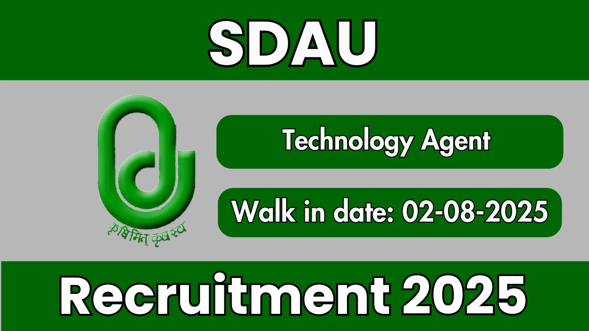 Sardarkrushinagar Dantiwada Agricultural University (SDAU) is conducting a walk-in recruitment for the post of Technology Agent. There is a total of 1 post available. The walk-in interview is scheduled for 02-08-2025. Candidates with a Diploma are eligible to attend. Read below for more details.