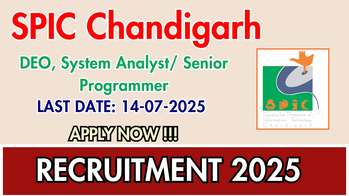 SPIC Chandigarh is recruiting for DEO, System Analyst/Senior Programmer positions. A total of 2 vacancies are available. The online application process starts on July 5th, 2025, and closes on July 14th, 2025.